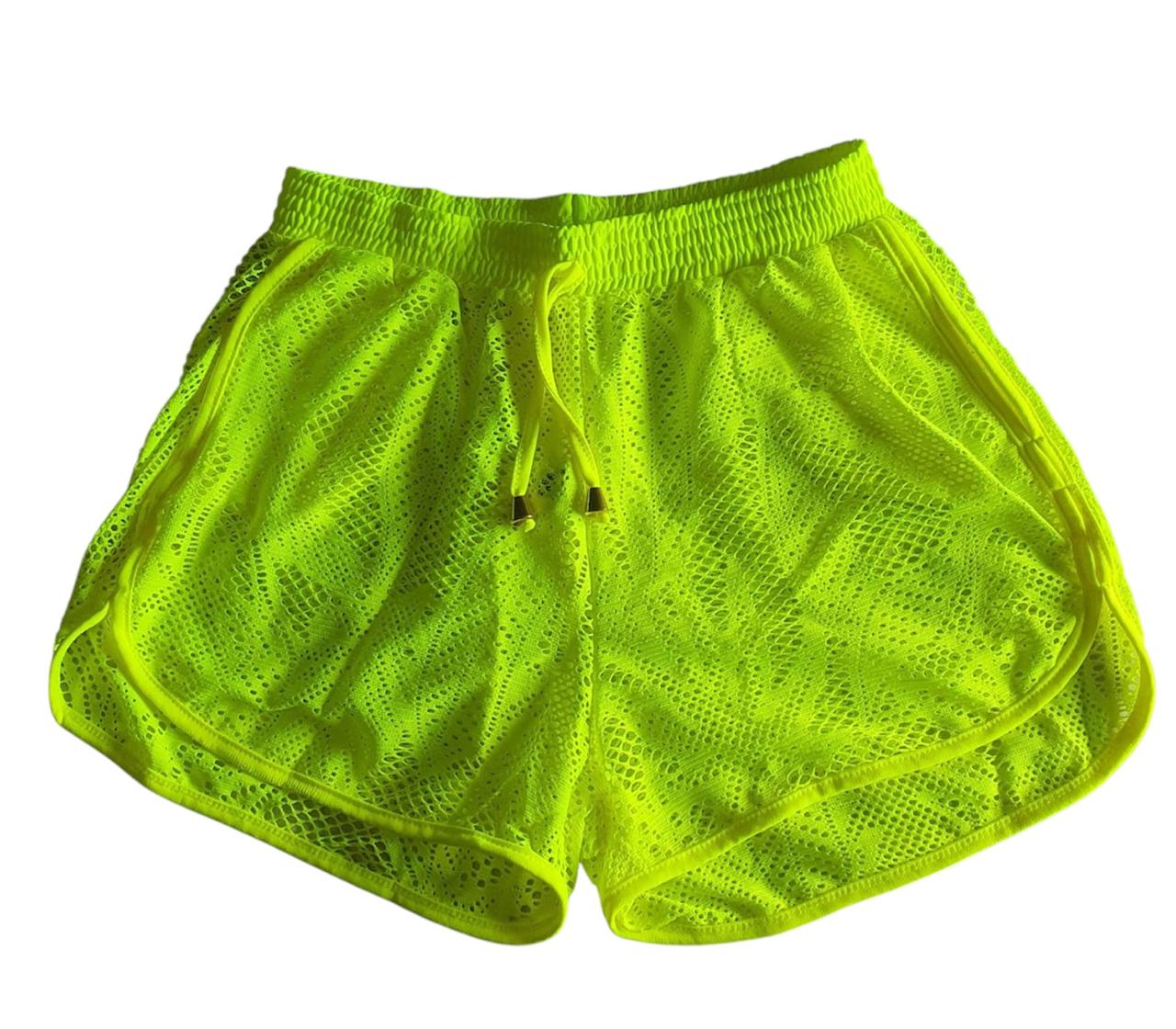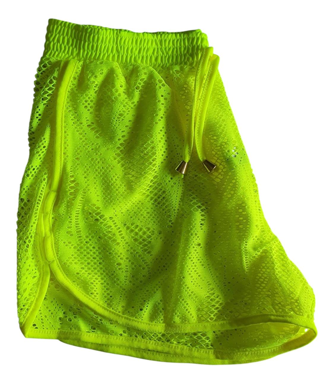 Short saida de praia arrastão verde neon